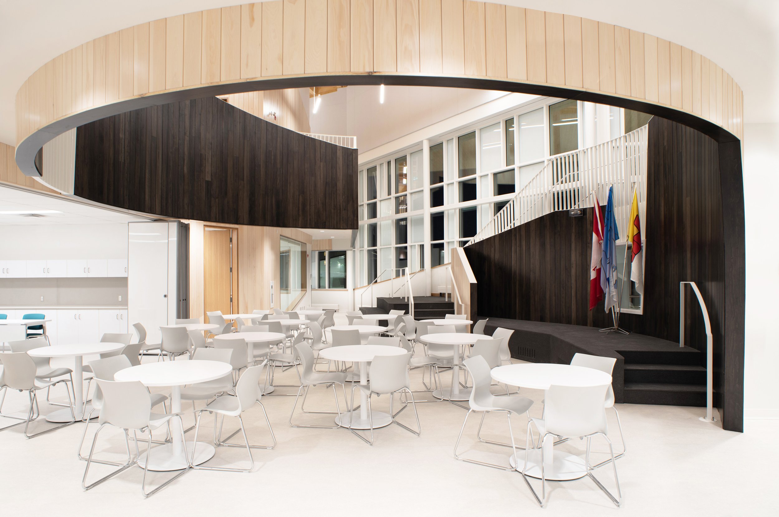 The internal organization emphasizes transparency and spatial interconnectivity. A circular gathering space at the entry serves as the social heart of the building, reflecting Inuit values of collaboration and shared community.